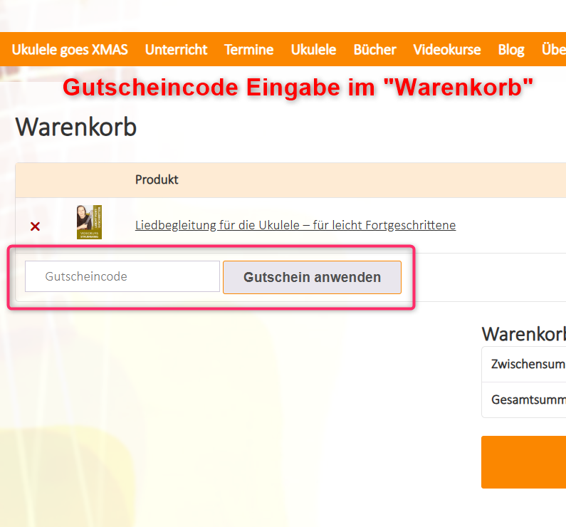 Gutscheincodes können einfach im Onlineshop eingelöst werden. Im „Warenkorb“ ist dafür ein eigenes Eingabefeld vorgesehen.